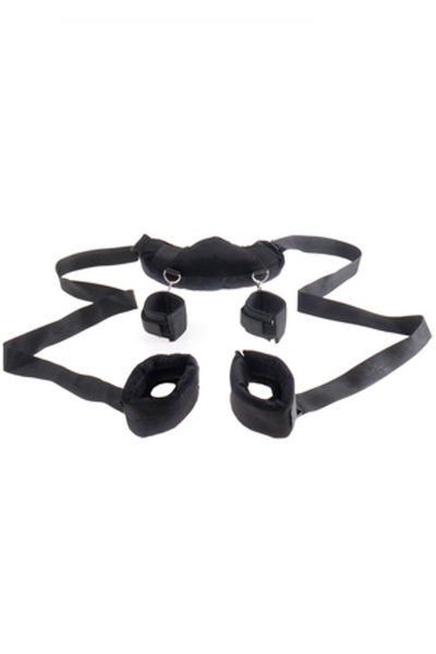 Le harnais se passe autour du cou ou derrière la nuque en fonction de votre position favorite. Les sangles en nylon sont robustes et réglables. Elles relient le harnais aux menottes de chevilles et maintiennent fermement vos jambes en position. Ainsi, vous ne risquez pas de vous fatiguer au moment où ça devient le meilleur!